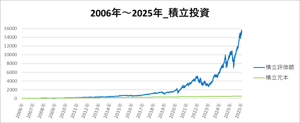 積立投資の一番リターンの高い期間は「2006年~2025年」でした。