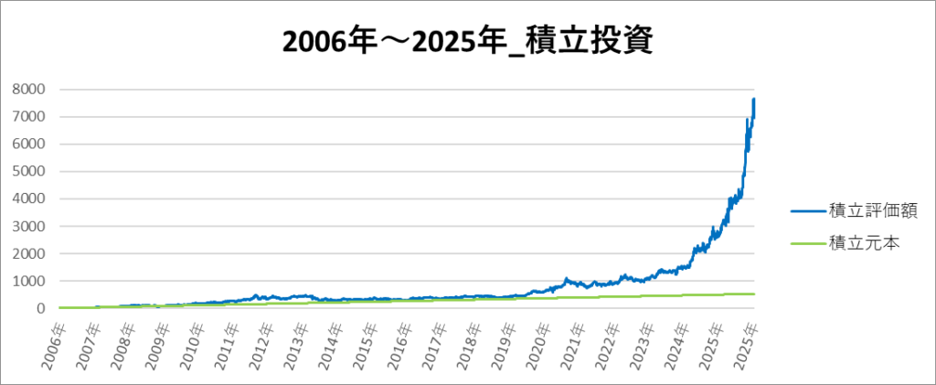 積立投資の一番リターンの高い期間は「2006年~2025年」でした。
