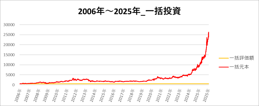 一括投資の一番リターンの高い期間は「2006年~2025年」でした。