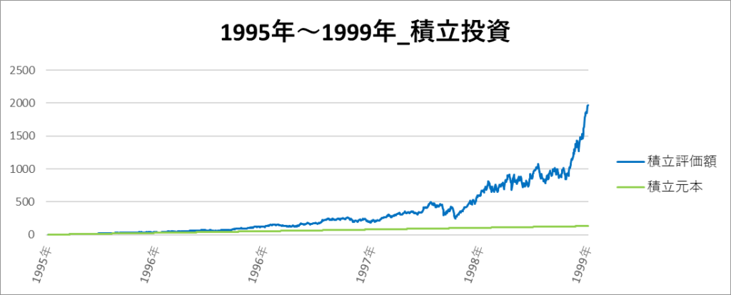積立投資の一番リターンの高い期間は「1995年~1999年」でした。