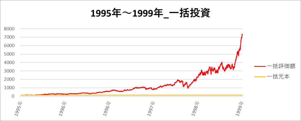 一括投資の一番リターンの高い期間は「1995年~1999年」でした。