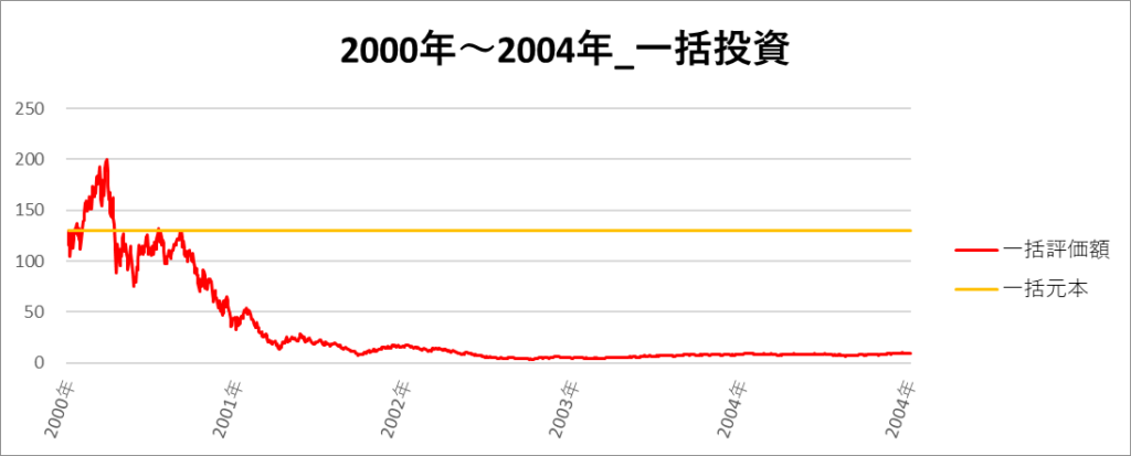 一括投資の一番リターンの低い期間は「2000年~2004年」でした。