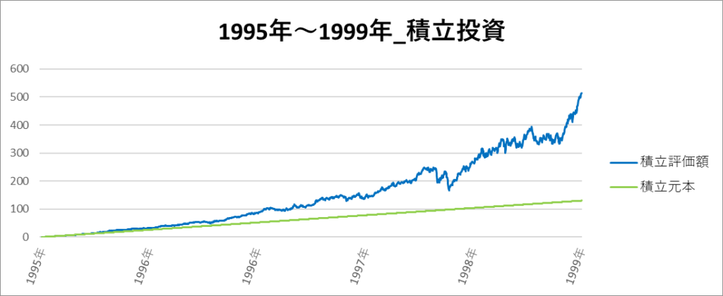 積立投資の一番リターンの高い期間は「1995年~1999年」でした。