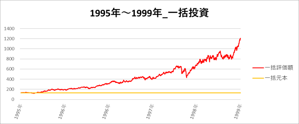 一括投資の一番リターンの高い期間は「1995年~1999年」でした。