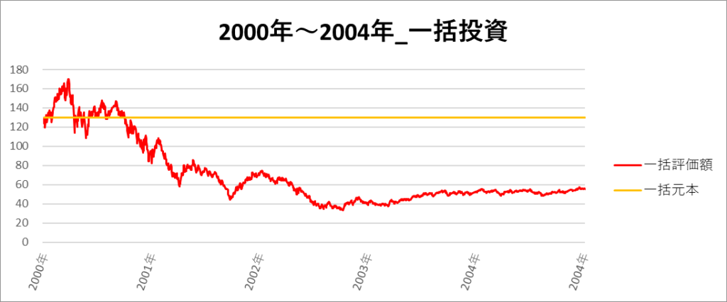 一括投資の一番リターンの低い期間は「2000年~2004年」でした。