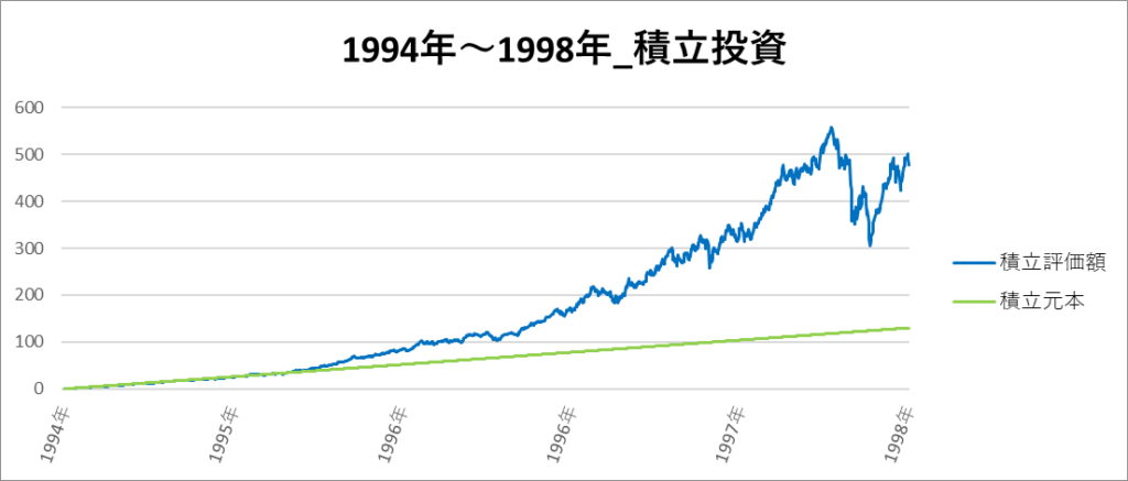 積立投資の一番リターンの高い期間は「1994年~1998年」でした。