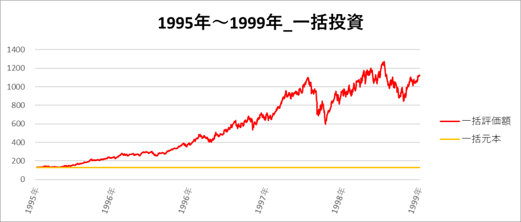 一括投資の一番リターンの高い期間は「1995年~1999年」でした。