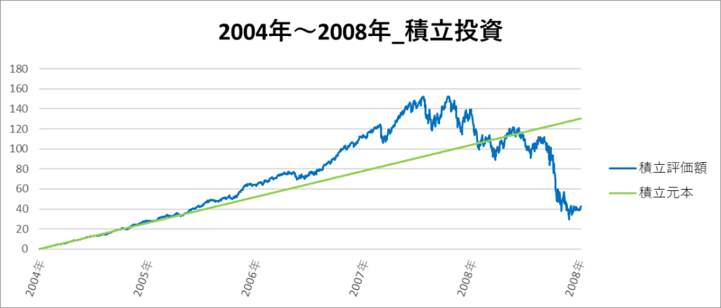 積立投資の一番リターンの低い期間は「2004年~2008年」でした。