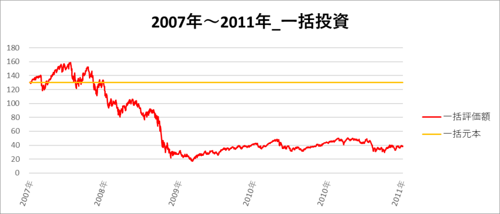一括投資の一番リターンの低い期間は「2007年~2011年」でした。