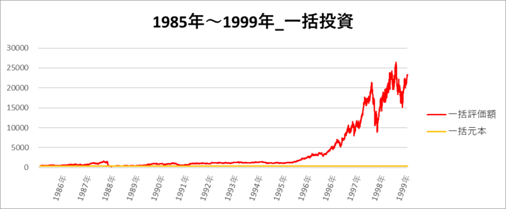 一括投資の一番リターンの高い期間は「1985年~1999年」でした。