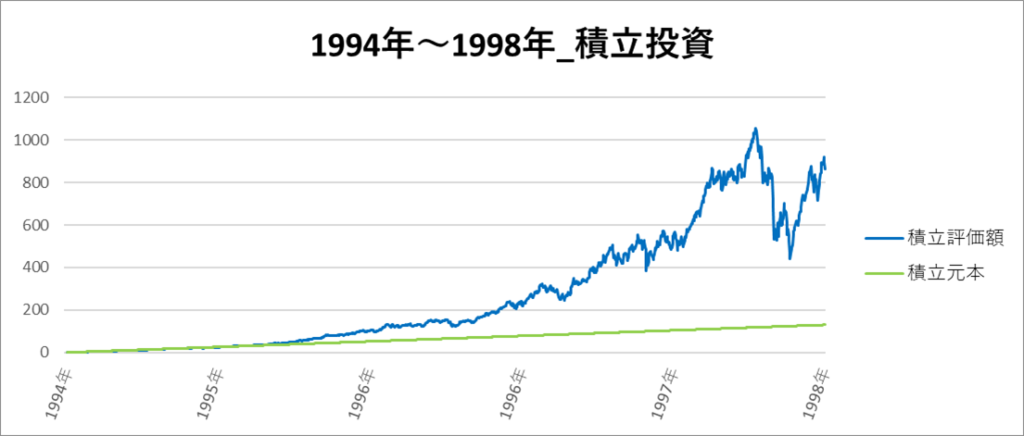 積立投資の一番リターンの高い期間は「1994年~1998年」でした。