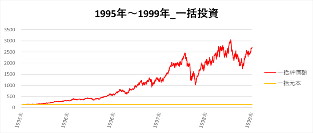 一括投資の一番リターンの高い期間は「1995年~1999年」でした。