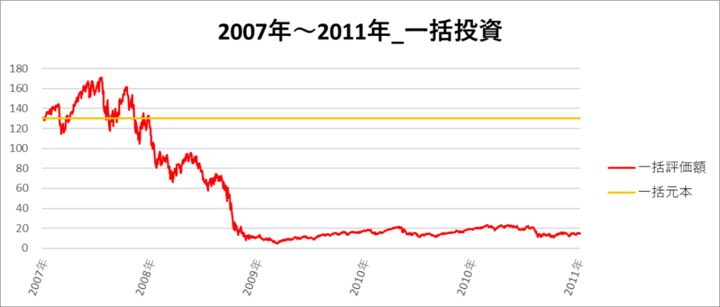 一括投資の一番リターンの低い期間は「2007年~2011年」でした。