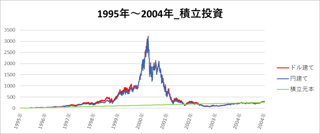 最終的にプラスリターンになる期間でも、実際の資産推移を見てみると大きな下落や、元本割れが発生していることが分かりましたね。