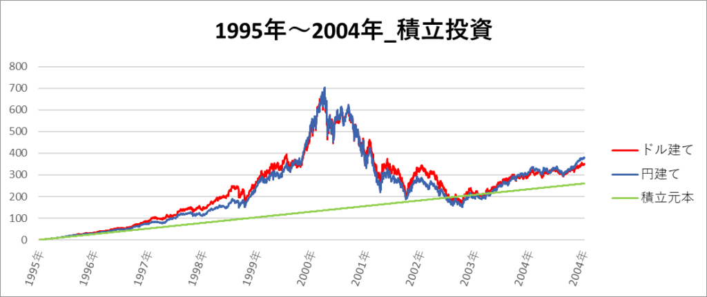 最終的にプラスリターンになる期間でも、実際の資産推移を見てみると大きな下落や、元本割れが発生していることが分かりましたね。