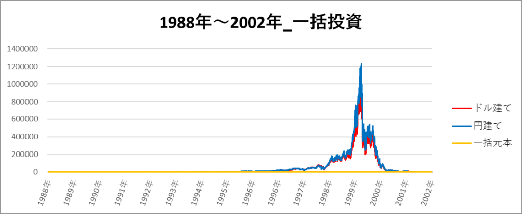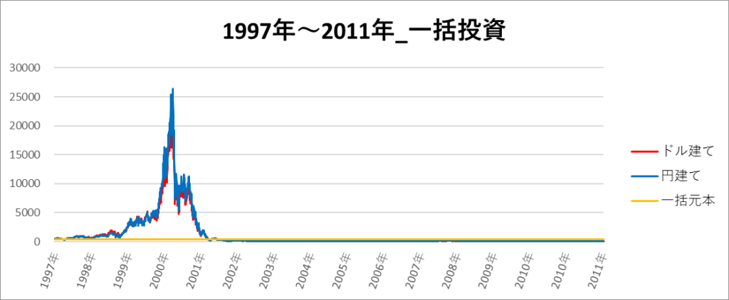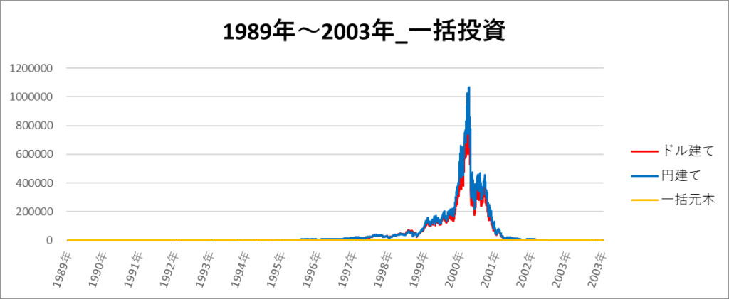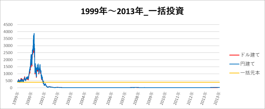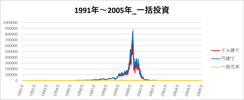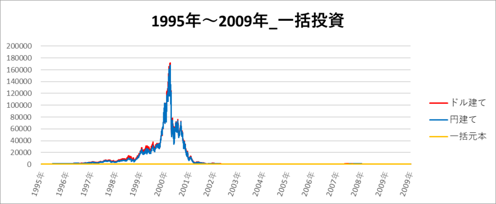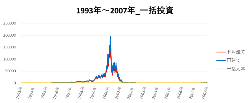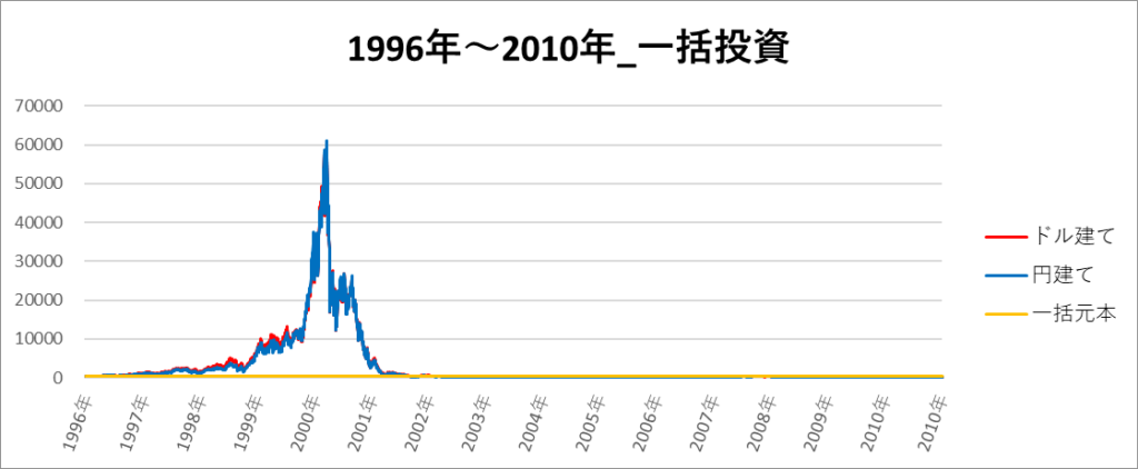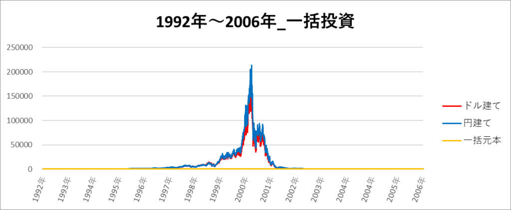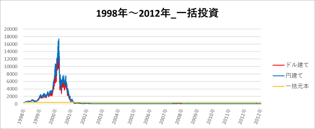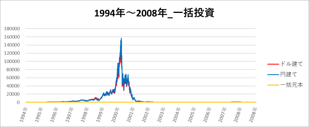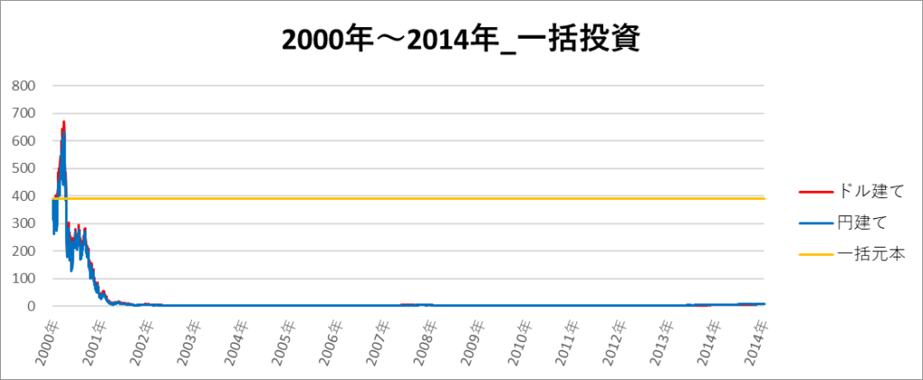 円建てとドル建ての2パターンを比較できるようにグラフに表記しているので、見比べて見てください。