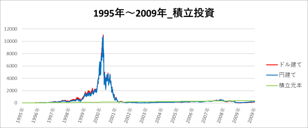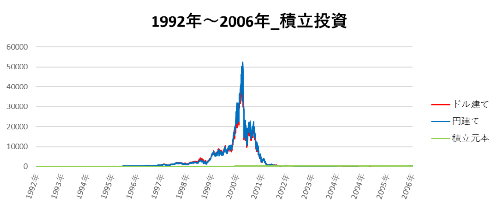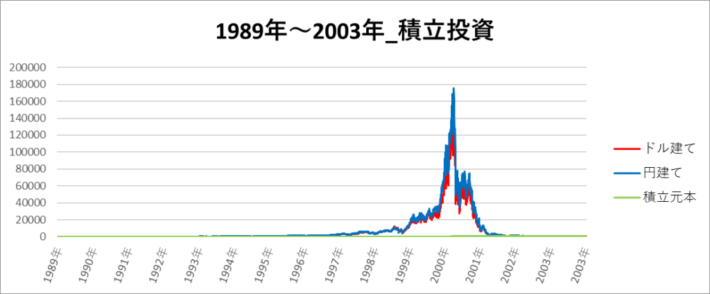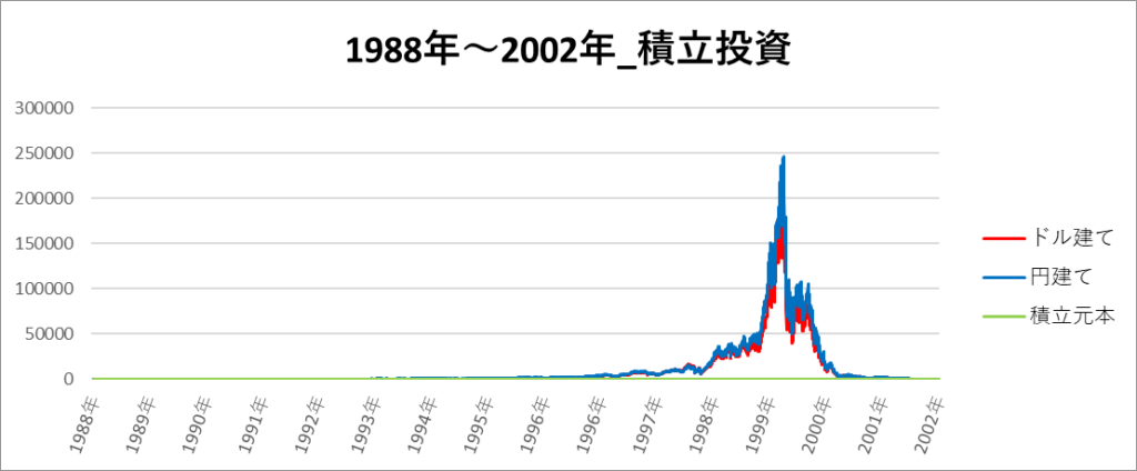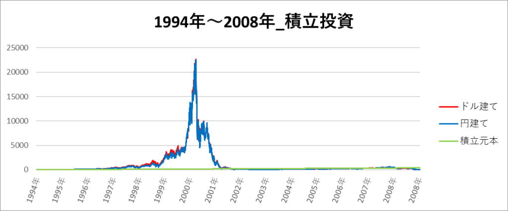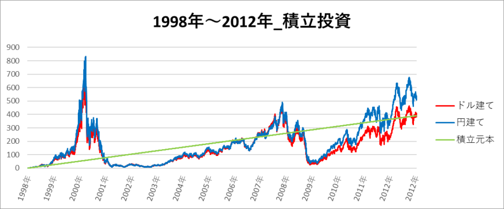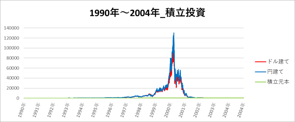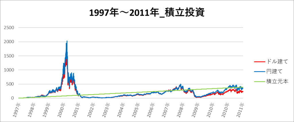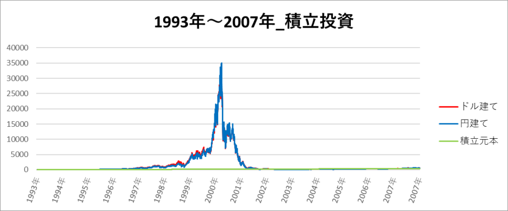 円建てとドル建ての2パターンを比較できるようにグラフに表記しているので、見比べて見てください。