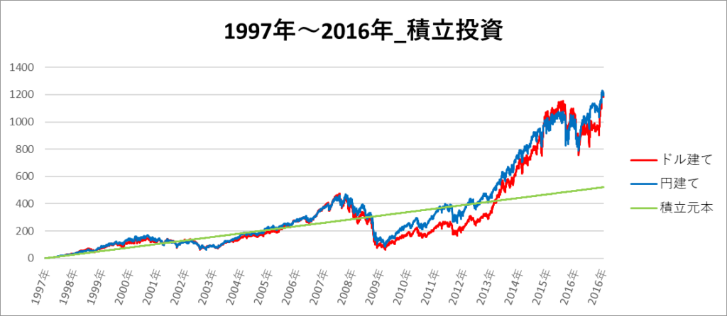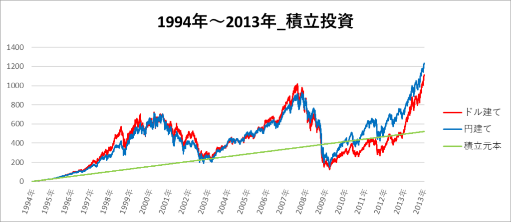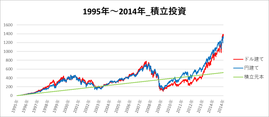 【過去チャート】S&P500の2倍レバレッジを20年間、積立投資をした場合の結果まとめ