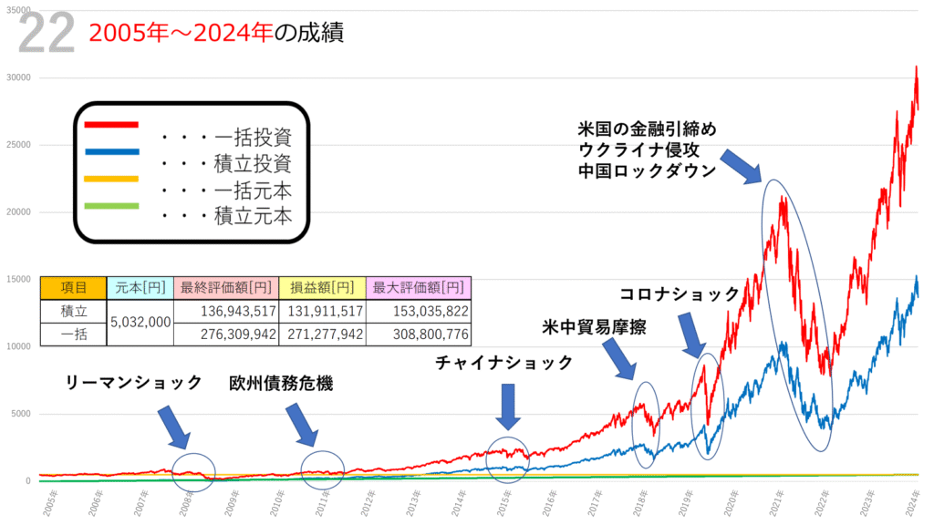 - 一括投資:2005年初めに約503万2千円を一括で投資