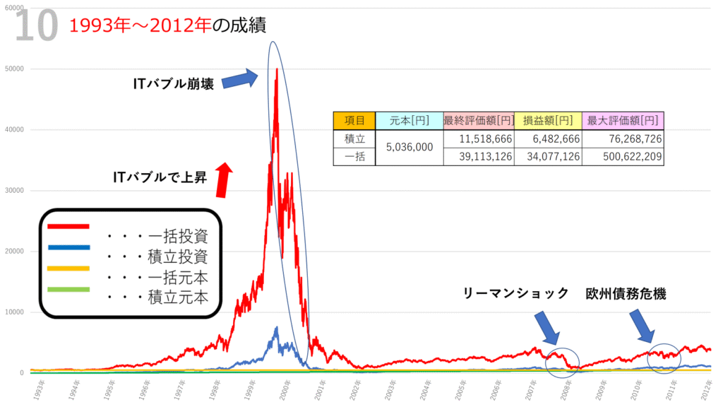 - 一括投資:1993年に約503万6千円を一度に投資