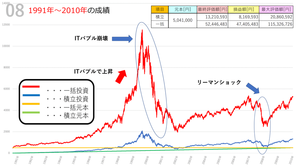 この間には「ITバブルの急上昇と崩壊」「リーマンショック」といった大きな出来事がありました。